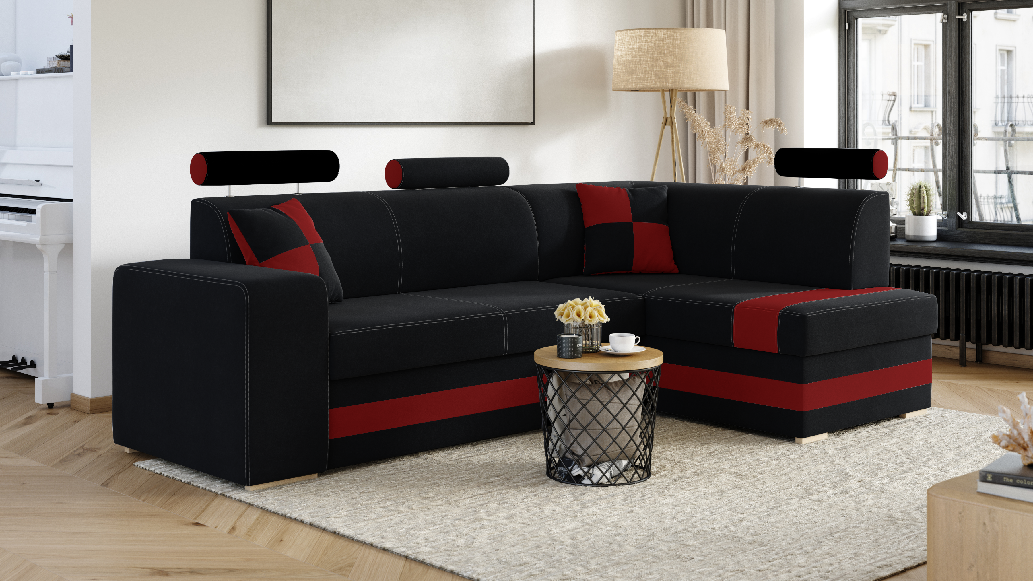 FRONTI Rohová rozkládací sedačka VEIRA černá-červená 20344