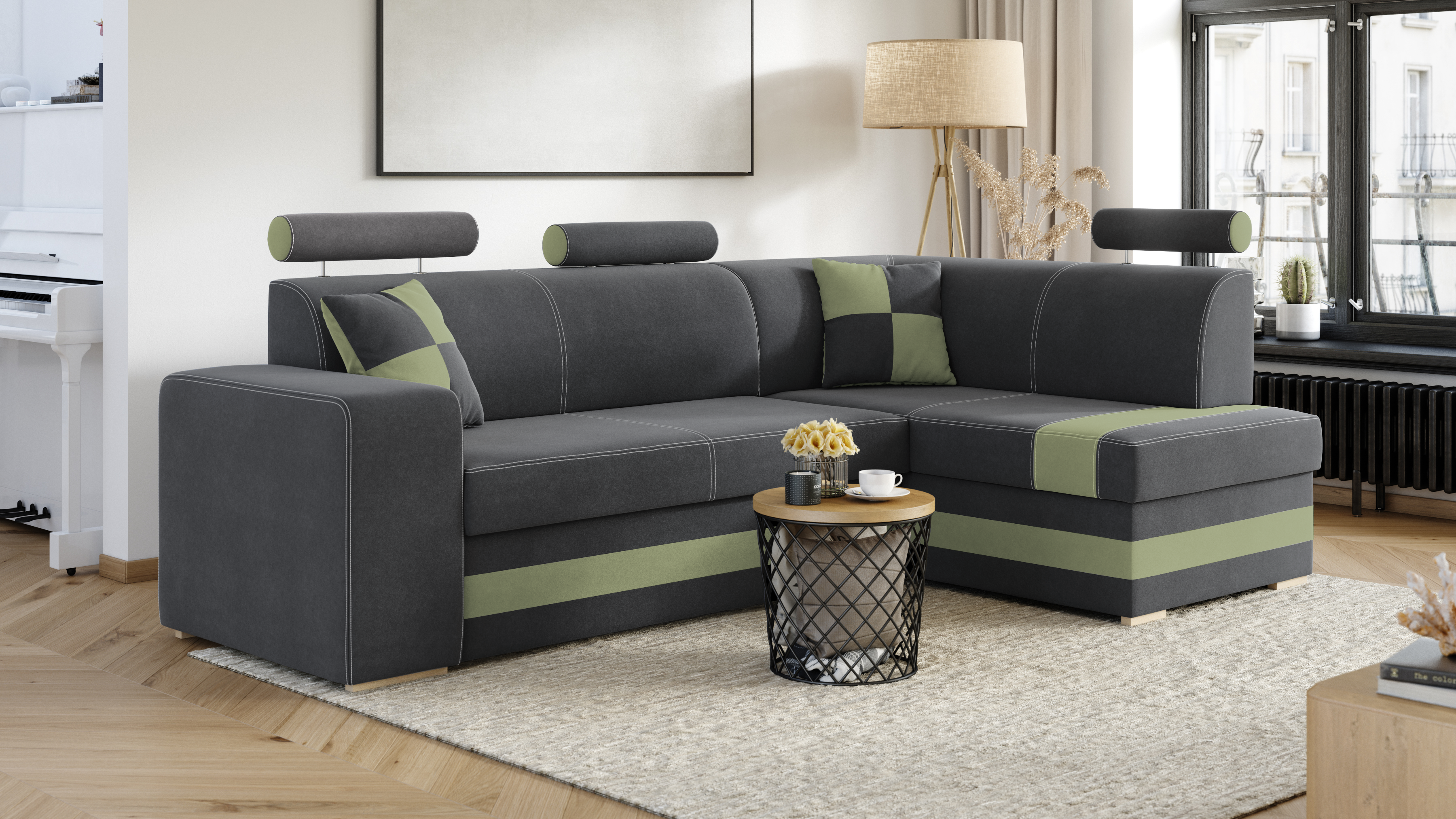 FRONTI Rohová rozkládací sedačka VEIRA šedá-zelená 20349