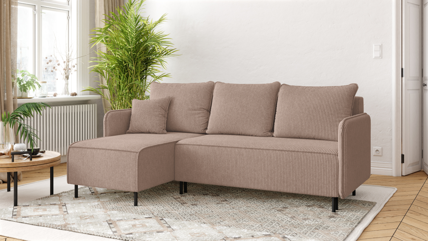Manšestrová rohová sedací souprava Vellutto - vysoce odolná a stylová látka - rozkládací - plocha na spaní 140x200 cm - úložný prostor - několik barevných variant