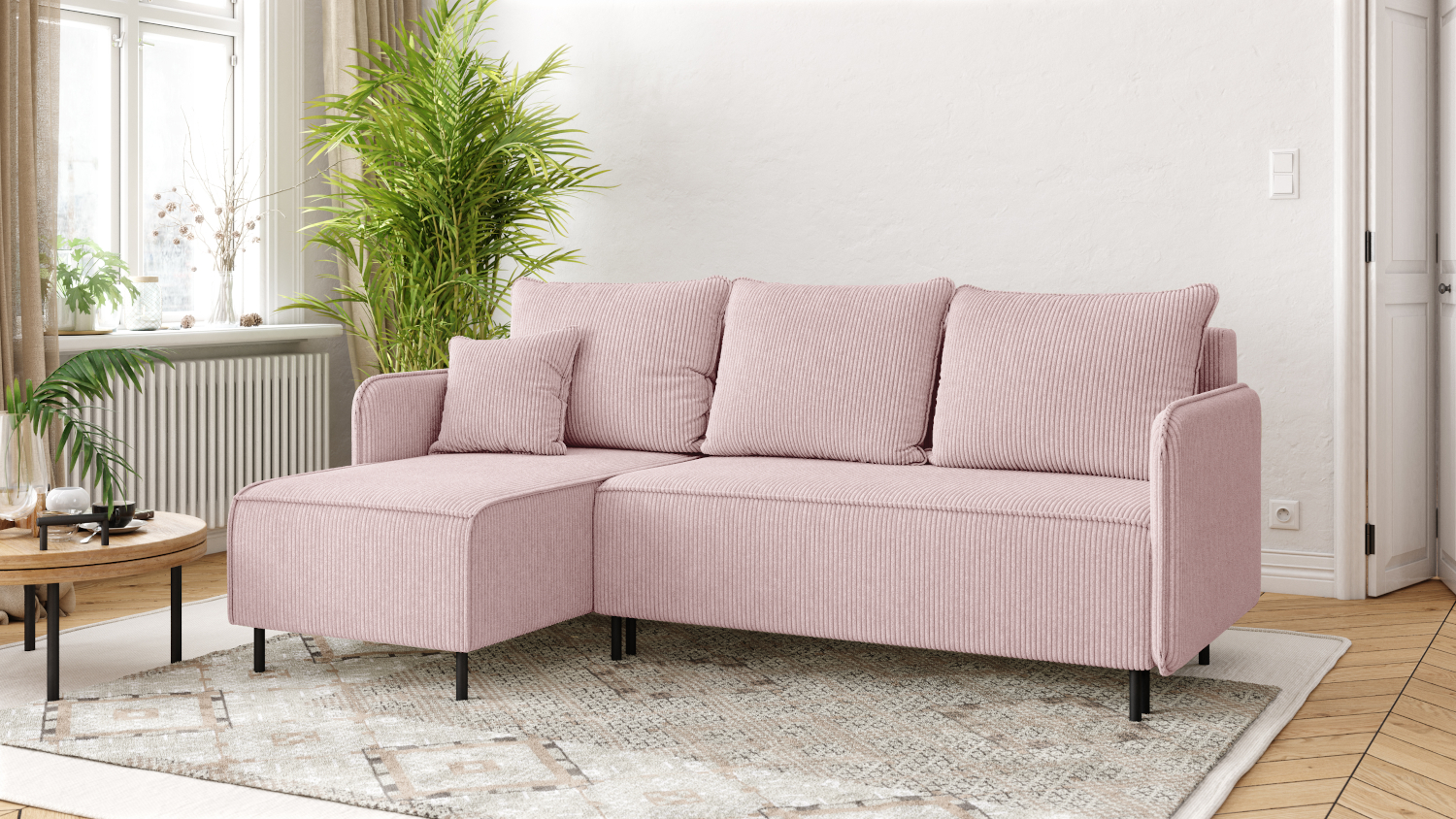 FRONTI Rohová rozkládací sedačka VELLUTTO - růžová - manšestr 20198