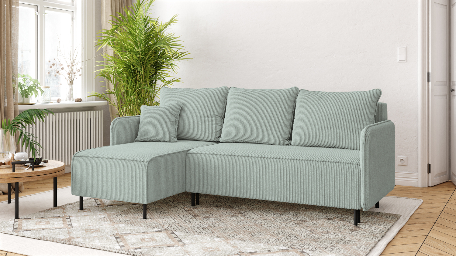 Manšestrová rohová sedací souprava Vellutto - vysoce odolná a stylová látka - rozkládací - plocha na spaní 140x200 cm - úložný prostor - několik barevných variant