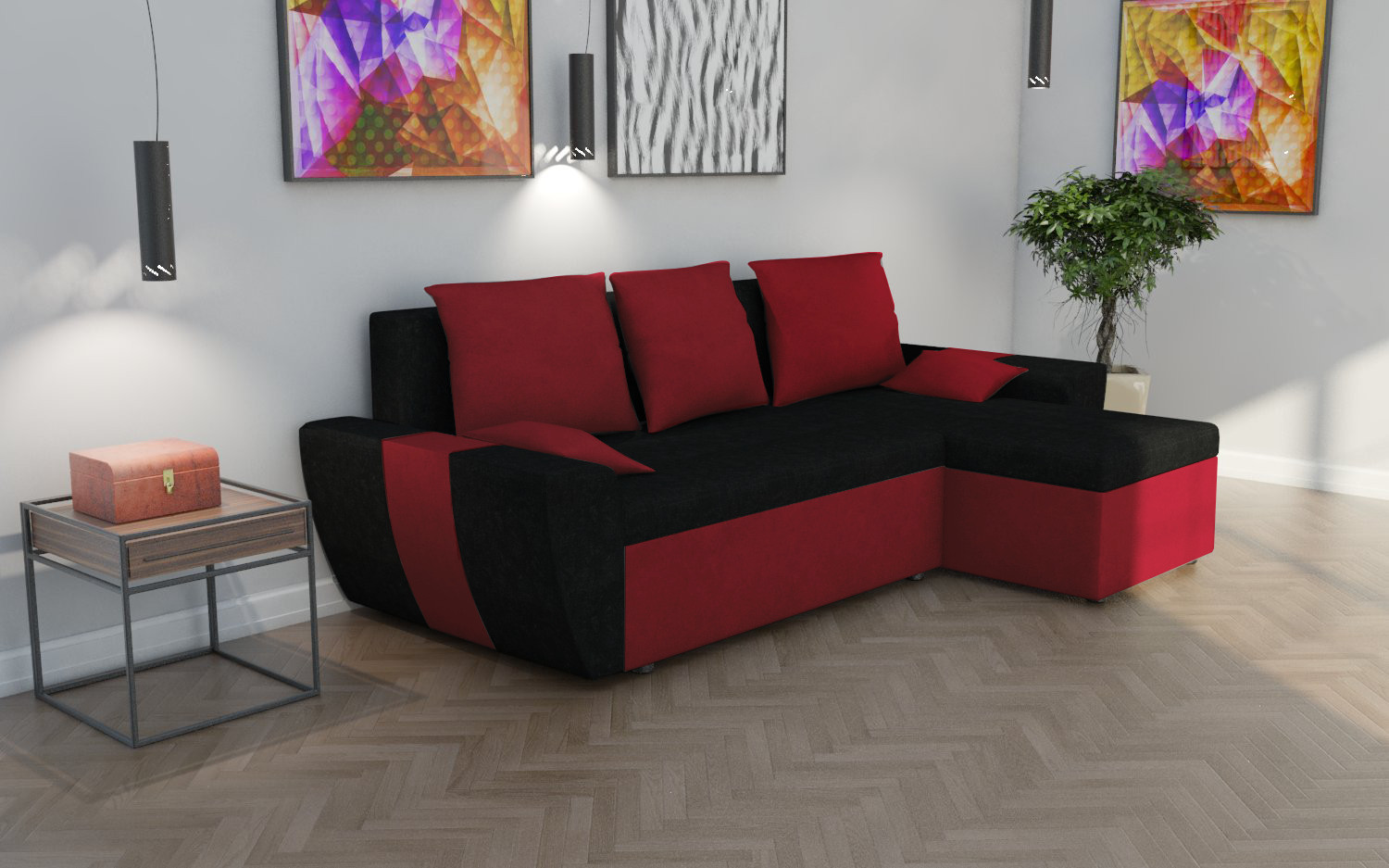 FRONTI Rohová rozkládací sedačka WILSON černo-červená 3227