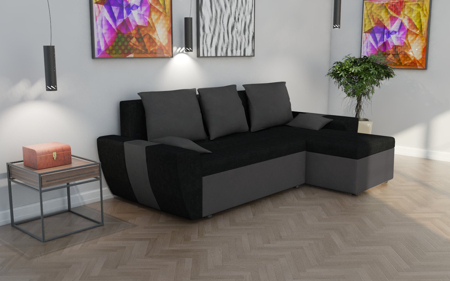 FRONTI Rohová rozkládací sedačka WILSON černo-tmavěšedá 3228