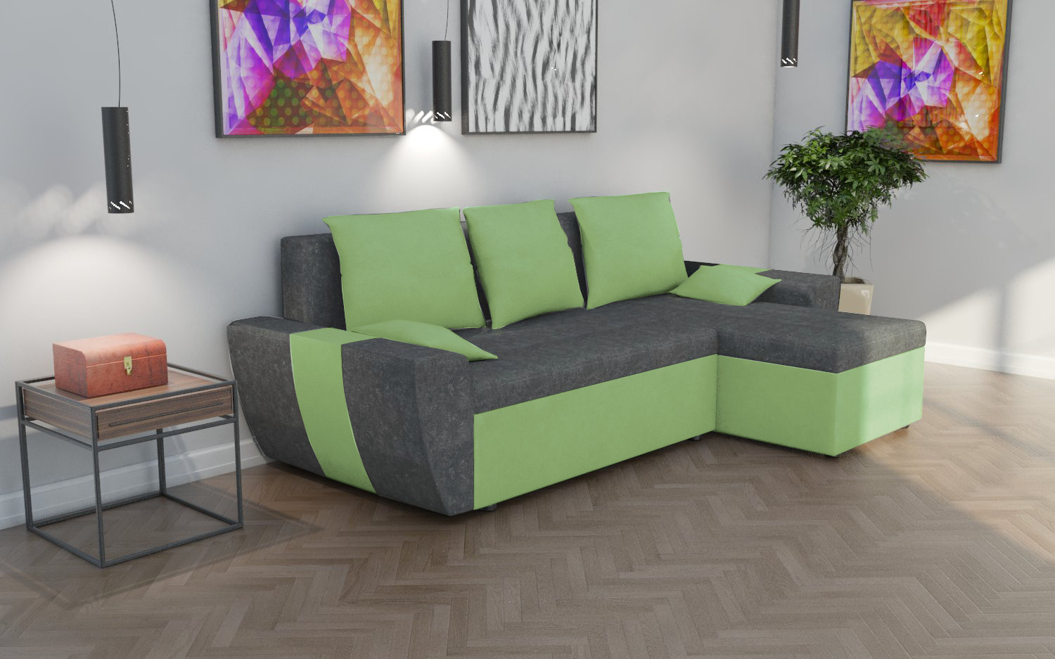 FRONTI Rohová rozkládací sedačka WILSON světlešedá-zelená 3230