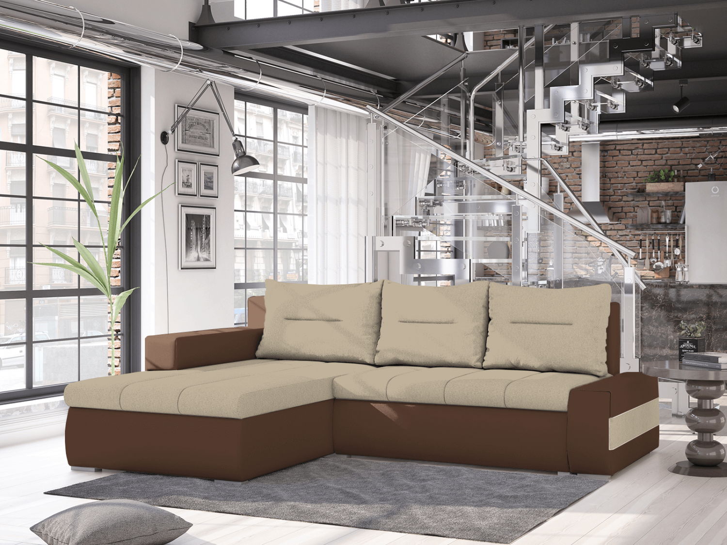 FRONTI Rohová rozkládací souprava BRANDON béžová-tmavěhnědá - SAWANA 17 + SAWANA 16