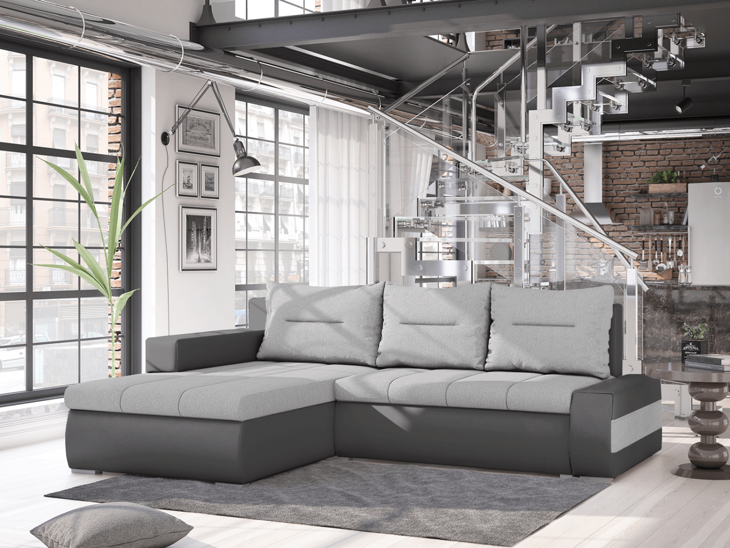 FRONTI Rohová rozkládací souprava BRANDON bílá-tmavěšedá - SAWANA 00 + SAWANA 96