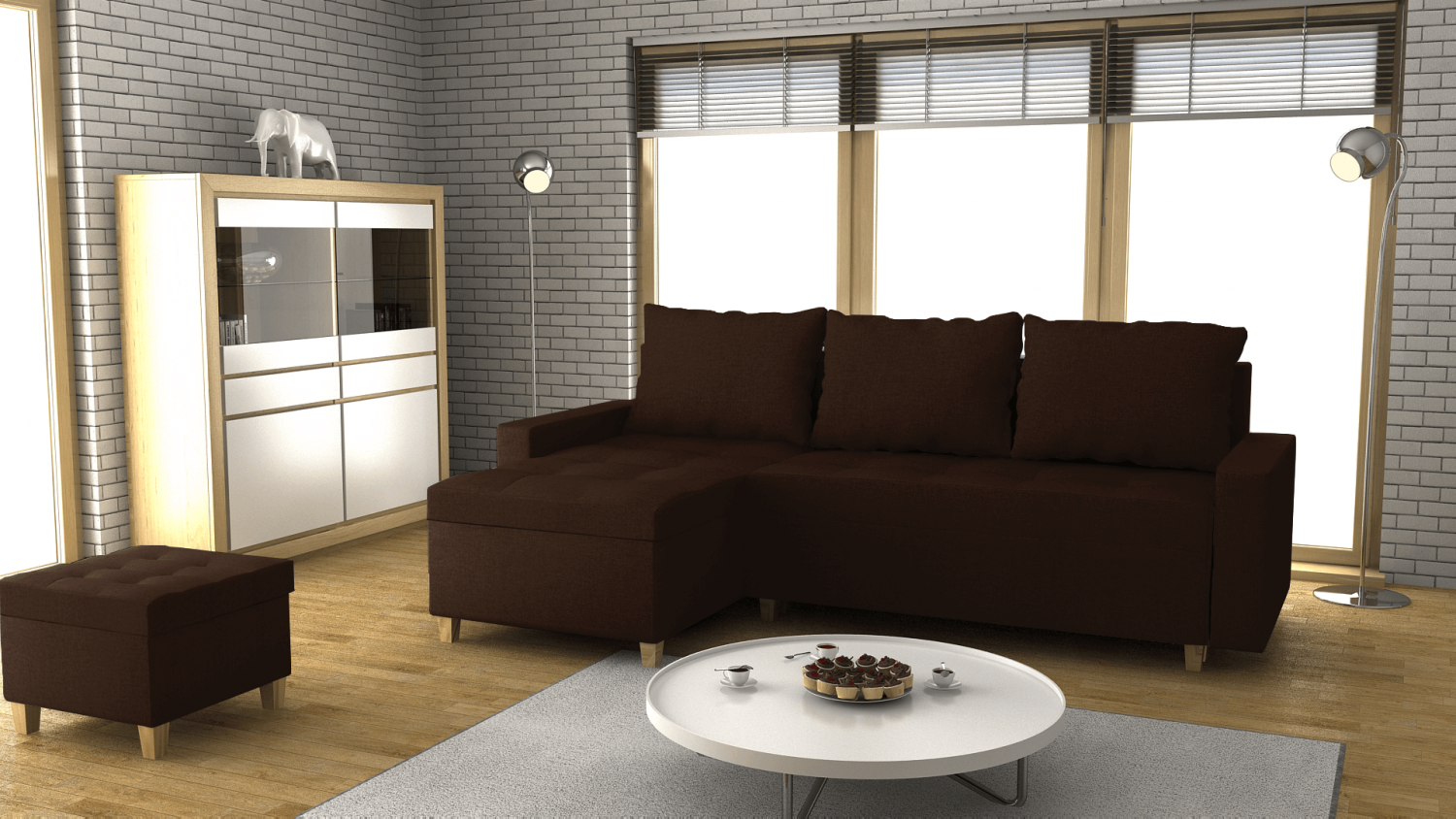FRONTI Rohová rozkládací souprava CARTER tmavěhnědá - SAWANA 16