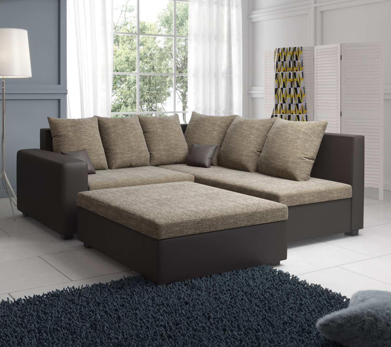 Pohodlí a styl v jednom: rohová sedačka MONARI Hledáte designovou a zároveň praktickou sedačku, která se stane dominantou vašeho obývacího pokoje? Rohová sedačka MONARI v sobě kombinuje moderní styl s funkčností a nabízí maximální pohodlí pro každodenní relaxaci. Její elegantní design je podtržen kombinací dvou kvalitních materiálů: příjemné a odolné strukturované látky Kornet a stylové ekokůže Dolaro. Tato kombinace nejen skvěle vypadá, ale také se snadno udržuje. Sedací souprava je dostupná v sedmi barevných variantách, takže si snadno vyberete tu pravou, která dokonale zapadne do vašeho interiéru. Praktické řešení pro každou domácnost Sedačka MONARI je ideální volbou pro ty, kteří ocení její praktičnost. Její provedení vám umožní proměnit ji během chvilky v pohodlné lůžko pro hosty. Už se nebudete muset starat o to, kde ubytujete návštěvu. Součástí sedací soupravy je také prostorný taburet, který můžete využít jako odkládací plochu, podnožku, nebo jako další místo k sezení. Jeho praktická funkce usnadní každodenní používání a umožní vám si odpočinout. UPOZORNĚNÍ: U tohoto produktu vyžadujeme platbu předem. NELZE objednat na dobírku. PROVEDENÍ Funkce spaní vsunutím taburetu Sestava BEZ integrovaného úložného prostoru Pohovka vyplněna vysokoelastickou čalounickou pěnou T2844 + lehká čalounická výplň Owata 100g Vlnové pružiny v sedáku zvyšující pohodlí Strukturovaná potahová látka Kornet + ekokůže Dolaro Volba rohu pravý/levý Sada obsahuje 6 polštářů se zipem Taburet je součástí ROZMĚRY Šířka - 210 cm Hloubka - 197 cm Hloubka sedáku - 80 cm Výška sedu - 40 cm Výška - 79 cm Rozměry taburetu - 98x94 cm Rozměrová tolerance +/- 3 cm.