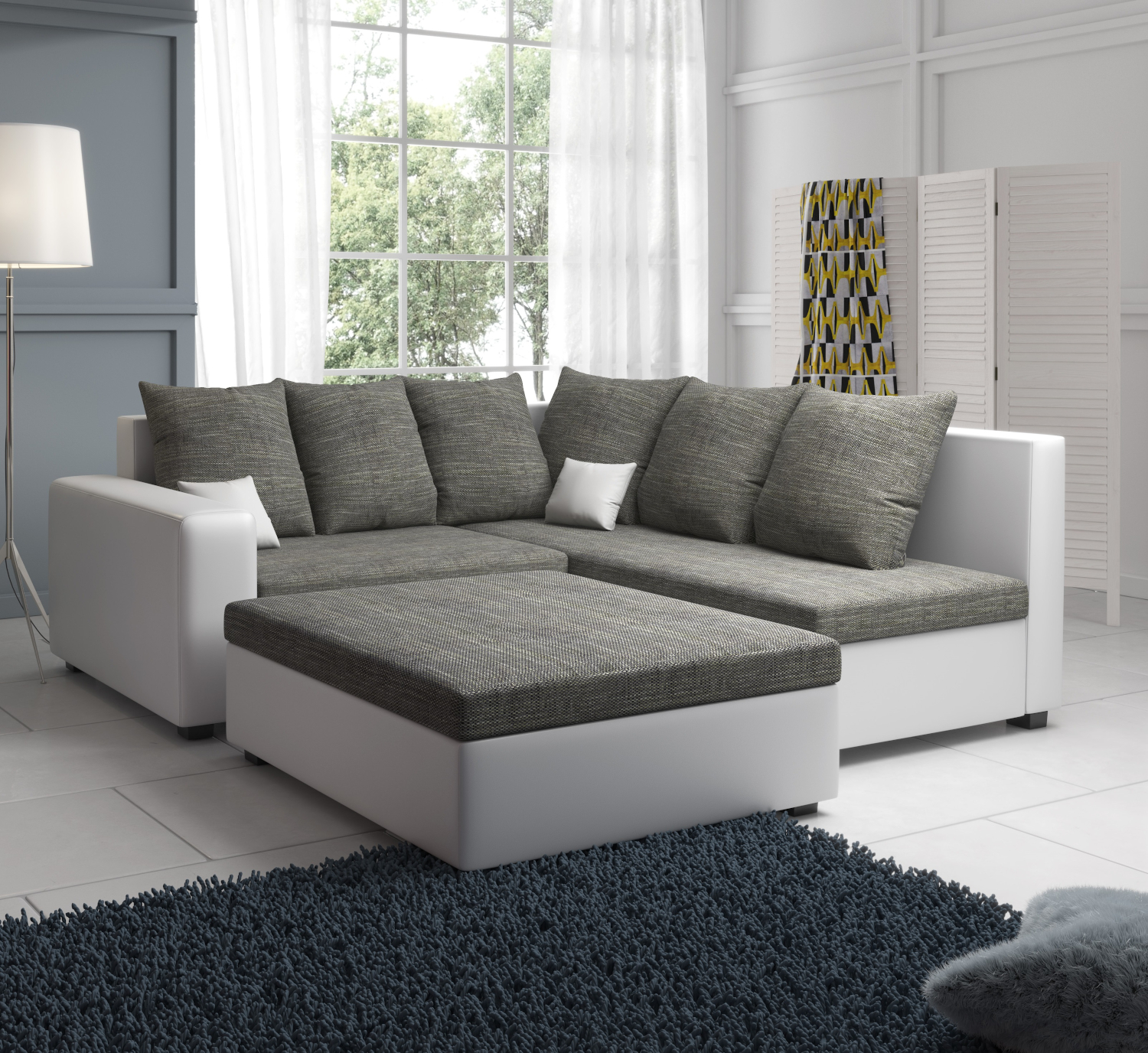 Domů Nábytek Obývací pokoj Sedací soupravy FRONTI Rohová sedačka MONARI - šedá-bílá 22307