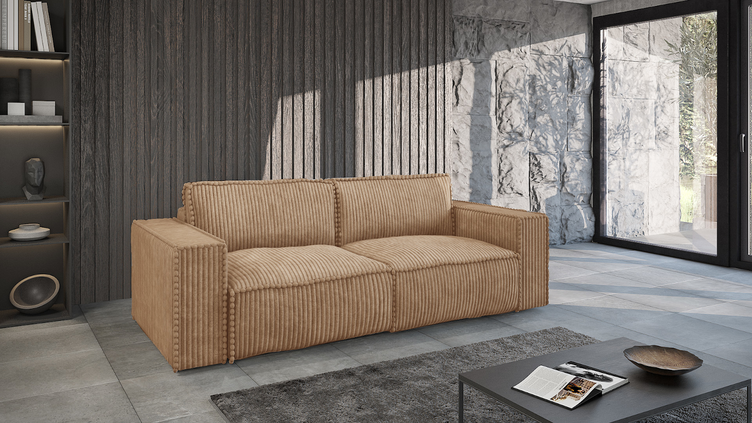 Rozkládací 3-místná pohovka TILIA - dokonalé spojení elegance a praktičnosti Sedací souprava TILIA představuje ideální volbu pro ty, kteří hledají kombinaci nadčasového designu, maximálního komfortu a praktické variability. Její moderní a zároveň útulný vzhled skvěle zapadne do každého interiéru, ať už preferujete minimalistický styl, nebo klasickou eleganci. TILIA je dostupná v osmi nádherných barevných variantách, od jemných neutrálních tónů až po výraznější odstíny, které dodají vašemu obývacímu pokoji osobitý charakter. Vyberte si tu pravou barvu, která podtrhne atmosféru vašeho domova a stane se centrálním prvkem, kde se budete rádi setkávat s rodinou a přáteli. Sestava TILIA nabízí naprostou flexibilitu přizpůsobení se vašim potřebám a prostoru. Můžete si ji zakoupit jako kompletní sestavu 3+2+1, která zahrnuje prostornou třímístnou pohovku, praktickou dvoumístnou pohovku a pohodlné křeslo. Tato konfigurace je ideální pro větší obývací pokoje, kde vytvoří harmonický celek. Pokud máte menší prostor nebo preferujete vlastní uspořádání, můžete si každý kus zakoupit jednotlivě. Získáte tak přesně to, co potřebujete – ať už je to pouze luxusní třímístná pohovka pro odpočinek, dvoumístná pohovka jako doplněk, nebo samostatné křeslo pro chvíle relaxace s knihou. Se sestavou TILIA získáte nejen krásný nábytek, ale i prostor stvořený pro život. UPOZORNĚNÍ: U tohoto produktu vyžadujeme platbu předem. NELZE objednat na dobírku. PROVEDENÍ Sedák vybaven vlnovými pružinami Dva objemné úložné prostory Výplň: čalounická pěna T30 Látka Tilia Polštáře na opěradlo součástí Funkce spaní 2 Automaty usnadňující rozklad Sedák je rozdělen na dva samostatné prvky umožňující přeměnu na rohovou pohovku ROZMĚRY Funkce spaní - 192x140 cm Hloubka - 102 cm Šířka - 240 cm Výška - 86 cm Rozměrová tolerance +/- 3 cm.