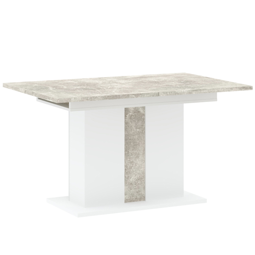 Elegantní a praktický rozkládací jídelní stůl GREYS v kombinaci bílé barvy a dekoru betonu představuje ideální řešení pro moderní interiéry. Jeho design se vyznačuje čistými liniemi a robustní podnoží, která zajišťuje vynikající stabilitu. Dekorativní prvek v podobě betonového pruhu dodává stolu jedinečný a sofistikovaný vzhled, zatímco bílá barva rozjasní prostor a opticky ho zvětší. Díky kompaktním rozměrům v nerozloženém stavu je stůl vhodný i do menších kuchyní či jídelen, kde poslouží jako stylové místo pro každodenní stravování. Klíčovou výhodou stolu GREYS je jeho rozkládací mechanismus, který umožňuje snadno a rychle zvětšit jídelní plochu. To je neocenitelné při pořádání rodinných oslav nebo setkání s přáteli, kdy je potřeba více místa. Stůl tak nabízí flexibilitu a přizpůsobí se vašim aktuálním potřebám. Kombinace kvalitních materiálů zaručuje dlouhou životnost a snadnou údržbu. Jídelní stůl GREYS je dokonalým spojením funkčnosti, moderního designu a elegance, což z něj činí skvělý doplněk každé domácnosti. PROVEDENÍ desky z kvalitní dřevotřísky nožky - kluzáky PVC zakončení hran ROZMĚRY Šířka - 134 cm Výška - 76 cm Hloubka - 90 cm Rozměrová torelance +/- 3 cm.
