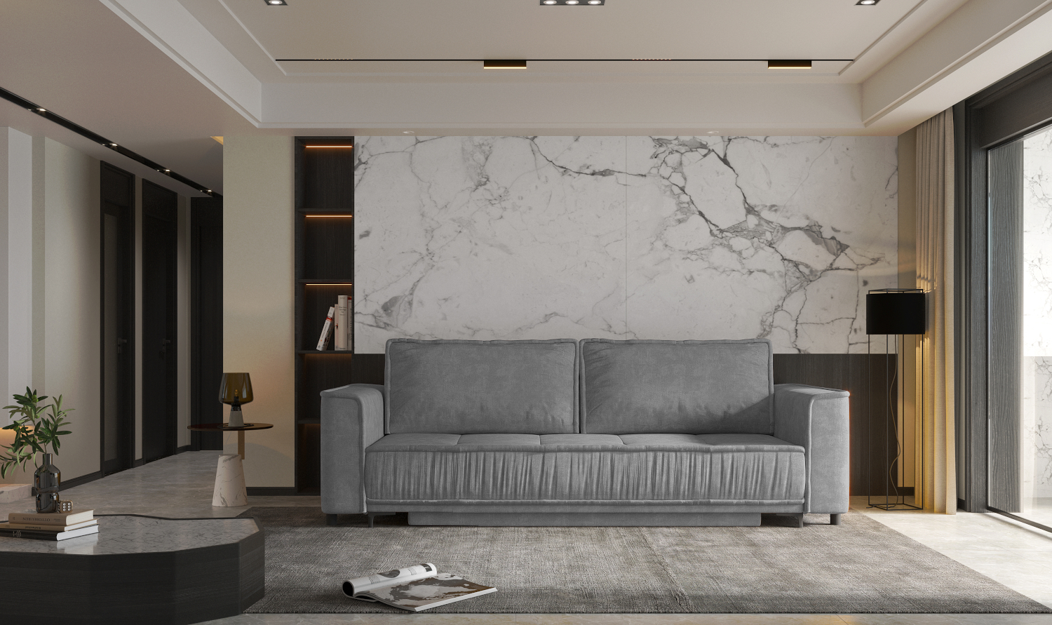Rozkládací pohovka DALLAS - Moderní elegance a praktičnost v jednom Představujeme pohovku DALLAS, ideální doplněk pro moderní interiér. Je navržena tak, aby vám nabídla maximální pohodlí, a zároveň dodala vašemu obývacímu pokoji sofistikovaný vzhled. Měkké polstrování a čisté linie zaručují, že se stane centrálním prvkem vašeho domova. Pohodlí, styl a multifunkčnost Tato pohovka je více než jen místo k sezení – nabízí praktickou funkci rozkladu pro příležitostné přespání a prostorný úložný prostor, kam snadno uložíte lůžkoviny nebo jiné věci. S 9 barevnými variantami si můžete vybrat tu pravou, která perfektně zapadne do vašeho stylu. Ať už hledáte elegantní neutrální tón, nebo výraznou barvu, DALLAS je pro vás tou správnou volbou. UPOZORNĚNÍ: U tohoto produktu vyžadujeme platbu předem. NELZE objednat na dobírku. PROVEDENÍ Sedák pohovky vybaven Bonellovými pružinami Objemný úložný prostor 2 opěrné polštáře se zipy Výplň: čalounická pěna T30 Látka Terra Funkce spaní Automat usnadňující rozklad ROZMĚRY Funkce spaní - 195x140 cm Hloubka - 85 cm Šířka - 230 cm Výška - 86 cm Rozměrová tolerance +/- 3 cm.