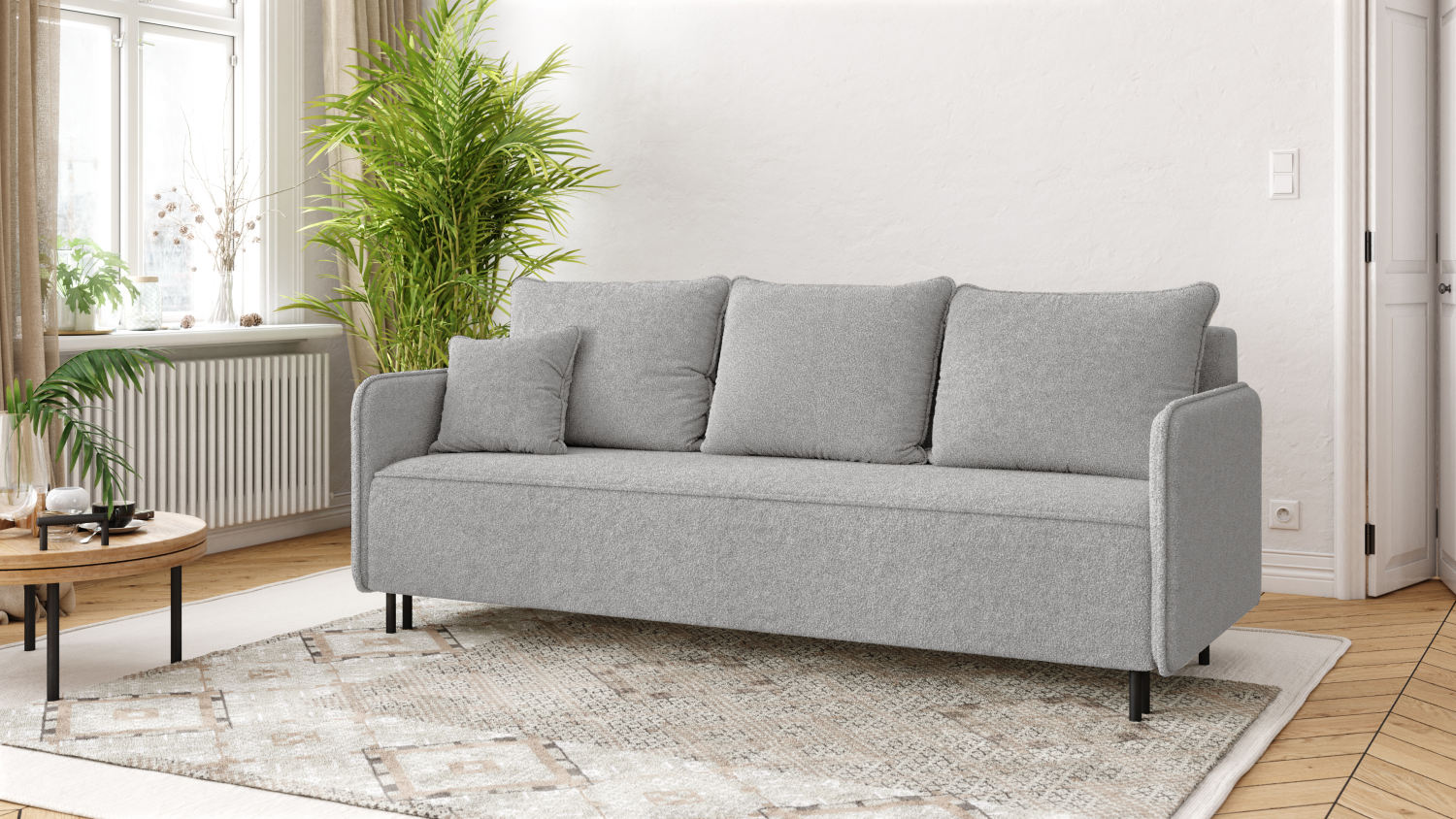 Moderní a pohodlná pohovka Amori - Bonellové pružiny a pevná čalounická pěna T-28 - úložný prostor - plocha na spaní 140x200 cm - velice měkká boucle látka