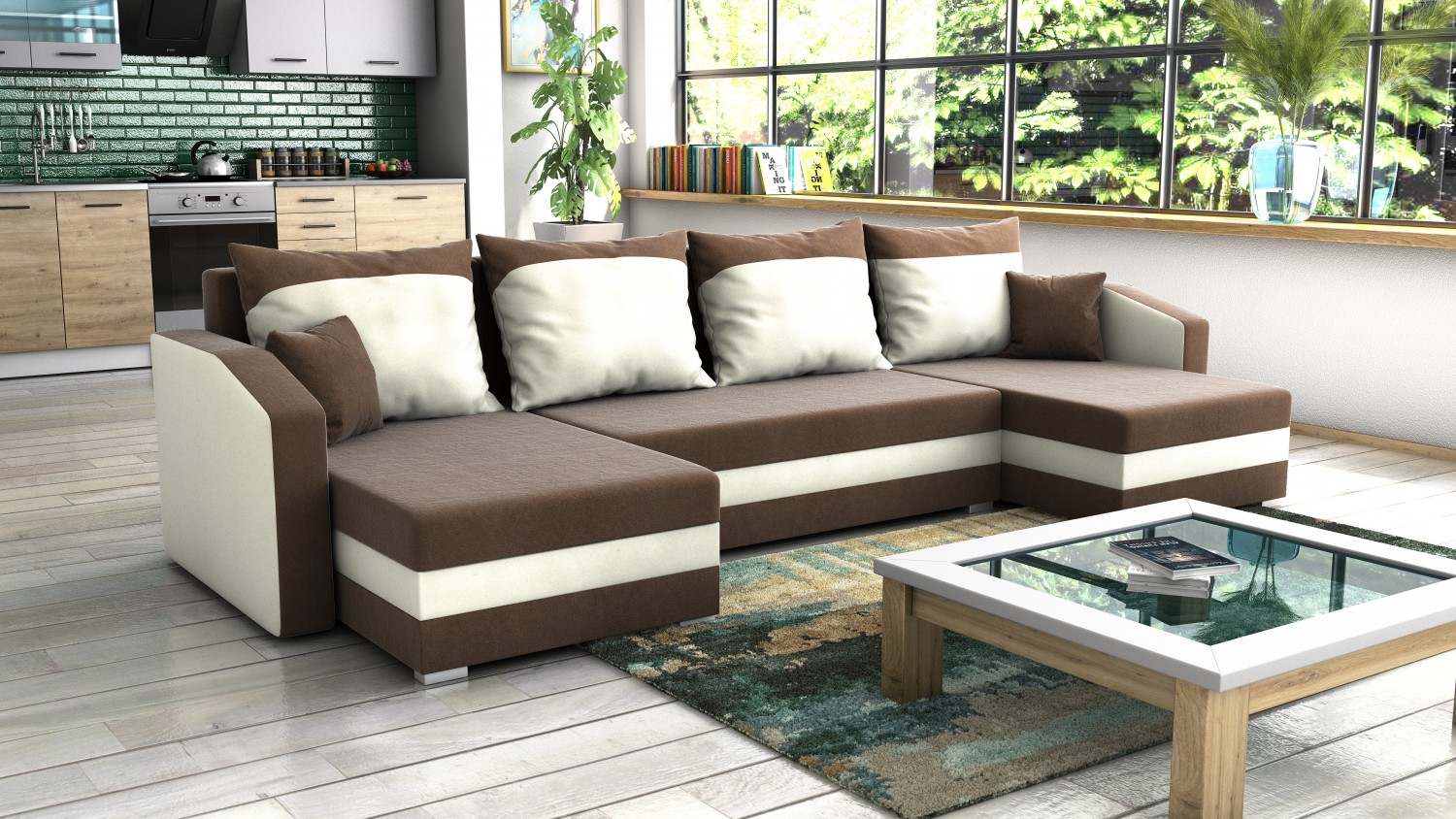 ROZMĚRY: Celková šířka: 298 cm Celková výška: 74 cm Výška područky: 58 cm Výška sedu: 35 cm Výška nohy: 2,8 cm Šířka lenošky: 70 cm Hloubka lenošky: 120 cm Šířka područky: 14 cm Hloubka područky: 86 cm Šířka odnímatelného sedáku: 130 cm Hloubka odnímatelného sedáku: 76 cm Výška opěradla nad sedákem: 38 cm Plocha na spaní: 140x270 cm