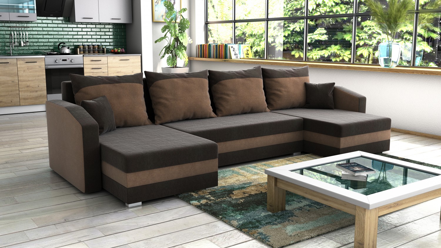 ROZMĚRY: Celková šířka: 298 cm Celková výška: 74 cm Výška područky: 58 cm Výška sedu: 35 cm Výška nohy: 2,8 cm Šířka lenošky: 70 cm Hloubka lenošky: 120 cm Šířka područky: 14 cm Hloubka područky: 86 cm Šířka odnímatelného sedáku: 130 cm Hloubka odnímatelného sedáku: 76 cm Výška opěradla nad sedákem: 38 cm Plocha na spaní: 140x270 cm