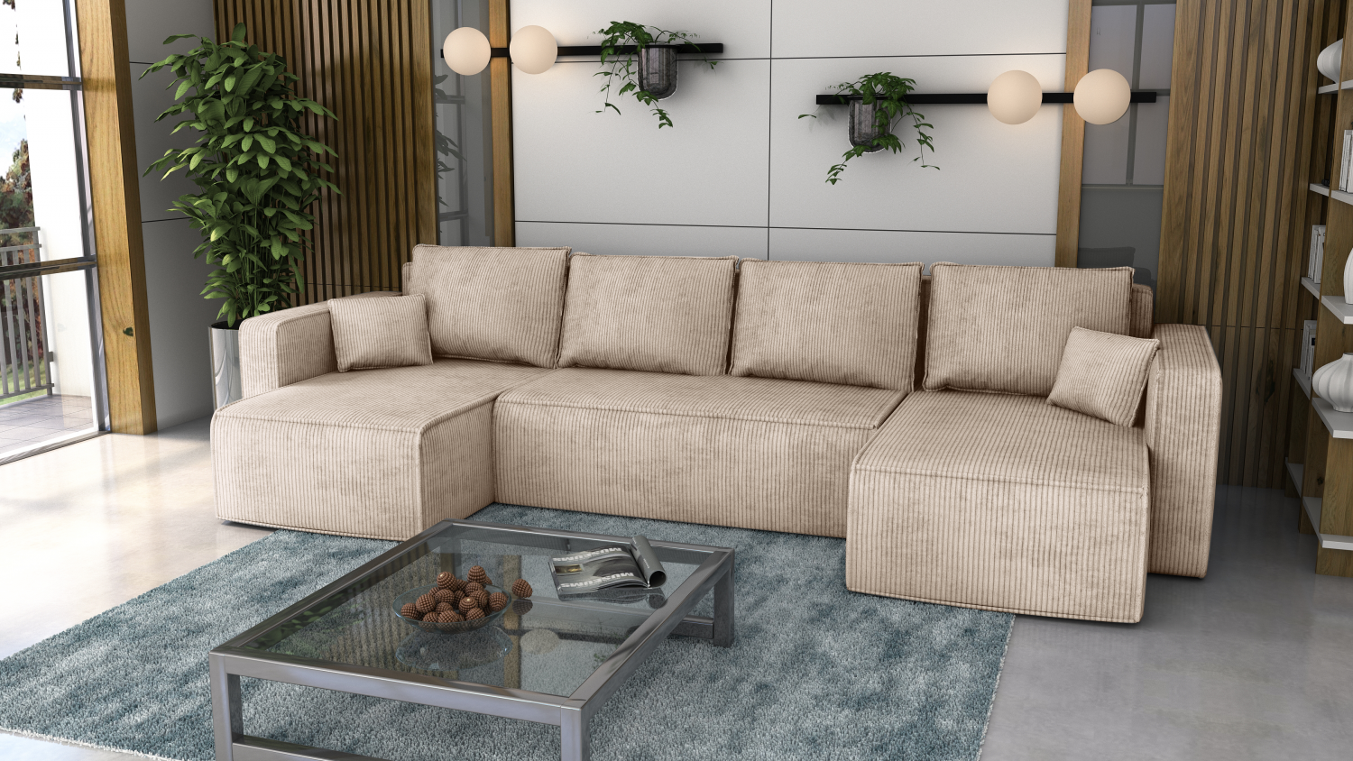 ROZMĚRY: Celková šířka: 304 cm Celková výška: 78 cm Výška područky: 58 cm Výška sedu: 38 cm Výška nohy: 1,5 cm Šířka lenošky: 70 cm Hloubka lenošky: 130 cm Šířka područky: 14 cm Hloubka područky: 88 cm Šířka rozkládacího sedáku: 130 cm Hloubka rozkládacího sedáku: 75 cm Plocha na spaní - 140x270 cm