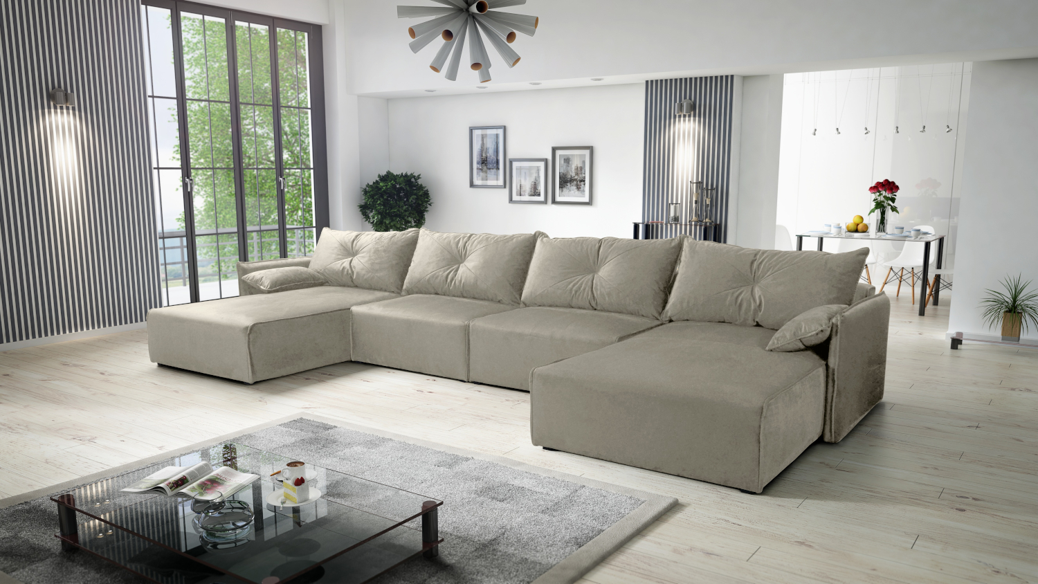 Nadýchaný a pohodlný design pro váš obývací pokoj - Rozkládací sedačka LEON U Představujeme vám sedací soupravu LEON, která do vašeho obývacího pokoje vnese nejen pohodlí, ale i moderní styl. Tento model do tvaru U nabízí dostatek prostoru pro relaxaci celé rodiny, a to díky velkoryse nadýchaným sedákům a opěrným polštářům. Celá konstrukce je navržena s důrazem na komfort, což z ní dělá ideální místo pro posezení s přáteli, rodinné filmové večery nebo jen klidné chvíle s knihou. Sedačka je čalouněna jemnou potahovou látkou, která je příjemná na dotek a dodává nábytku luxusní vzhled. Dostupných je 11 barevných variant, od klasických neutrálních tónů až po výraznější odstíny, takže si snadno vyberete tu pravou, která se bude hodit k vašemu interiéru. Praktické úložné prostory a variabilita Sedačka LEON není jen krásná, ale i vysoce funkční. Je vybavena dvěma praktickými úložnými prostory, do kterých snadno uschováte lůžkoviny, sezónní dekorace nebo dětské hračky a udržíte tak obývací pokoj v dokonalém pořádku. Kromě toho je sedačka také rozkládací, což vám umožní snadno vytvořit pohodlné lůžko pro hosty. Pokud potřebujete ještě více místa k sezení, je možné dokoupit přídavný taburet ve stejné barevné variantě, který skvěle doplní celou sestavu. Tento taburet může sloužit jako další místo k sezení, podnožka nebo jako provizorní odkládací plocha. LEON představuje kombinaci elegance, pohodlí a praktičnosti. UPOZORNĚNÍ: U tohoto produktu vyžadujeme platbu předem. NELZE objednat na dobírku. PROVEDENÍ Funkce spaní 110 x 400 cm 2 objemné úložné prostory na lůžkoviny Pohovka vyplněna vysokoelastickou čalounickou pěnou T2844 + čalounická výplň Owata 300g Vlnové pružiny v sedáku zvyšující pohodlí Potaženo jemnou sametovou látkou Royal Sedačka obsahuje 4 velké polštáře a 2 malé dekorační Možnost dokoupit taburet ve stejné barvě ROZMĚRY Šířka - 420 cm Hloubka - 179 cm Hloubka sedáku - 56 cm Výška sedu - 38 cm Výška - 85 cm Povrch spaní - 110 x 400 cm Rozměry taburetu - 100 x 98 x 38 cm Rozměrová tolerance +/- 3 cm.