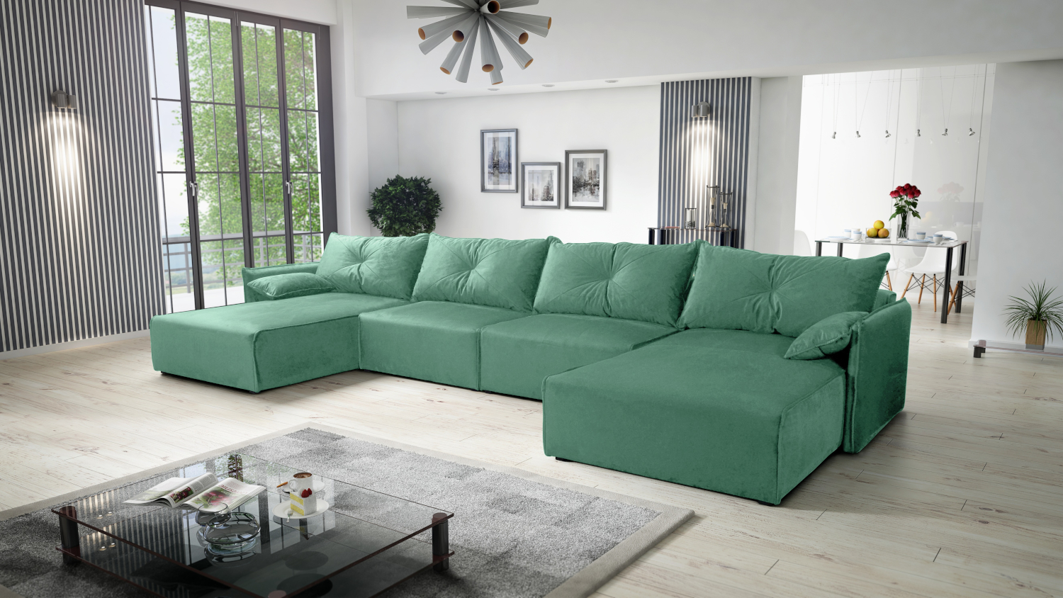Nadýchaný a pohodlný design pro váš obývací pokoj - Rozkládací sedačka LEON U Představujeme vám sedací soupravu LEON, která do vašeho obývacího pokoje vnese nejen pohodlí, ale i moderní styl. Tento model do tvaru U nabízí dostatek prostoru pro relaxaci celé rodiny, a to díky velkoryse nadýchaným sedákům a opěrným polštářům. Celá konstrukce je navržena s důrazem na komfort, což z ní dělá ideální místo pro posezení s přáteli, rodinné filmové večery nebo jen klidné chvíle s knihou. Sedačka je čalouněna jemnou potahovou látkou, která je příjemná na dotek a dodává nábytku luxusní vzhled. Dostupných je 11 barevných variant, od klasických neutrálních tónů až po výraznější odstíny, takže si snadno vyberete tu pravou, která se bude hodit k vašemu interiéru. Praktické úložné prostory a variabilita Sedačka LEON není jen krásná, ale i vysoce funkční. Je vybavena dvěma praktickými úložnými prostory, do kterých snadno uschováte lůžkoviny, sezónní dekorace nebo dětské hračky a udržíte tak obývací pokoj v dokonalém pořádku. Kromě toho je sedačka také rozkládací, což vám umožní snadno vytvořit pohodlné lůžko pro hosty. Pokud potřebujete ještě více místa k sezení, je možné dokoupit přídavný taburet ve stejné barevné variantě, který skvěle doplní celou sestavu. Tento taburet může sloužit jako další místo k sezení, podnožka nebo jako provizorní odkládací plocha. LEON představuje kombinaci elegance, pohodlí a praktičnosti. UPOZORNĚNÍ: U tohoto produktu vyžadujeme platbu předem. NELZE objednat na dobírku. PROVEDENÍ Funkce spaní 110 x 400 cm 2 objemné úložné prostory na lůžkoviny Pohovka vyplněna vysokoelastickou čalounickou pěnou T2844 + čalounická výplň Owata 300g Vlnové pružiny v sedáku zvyšující pohodlí Potaženo jemnou sametovou látkou Royal Sedačka obsahuje 4 velké polštáře a 2 malé dekorační Možnost dokoupit taburet ve stejné barvě ROZMĚRY Šířka - 420 cm Hloubka - 179 cm Hloubka sedáku - 56 cm Výška sedu - 38 cm Výška - 85 cm Povrch spaní - 110 x 400 cm Rozměry taburetu - 100 x 98 x 38 cm Rozměrová tolerance +/- 3 cm.