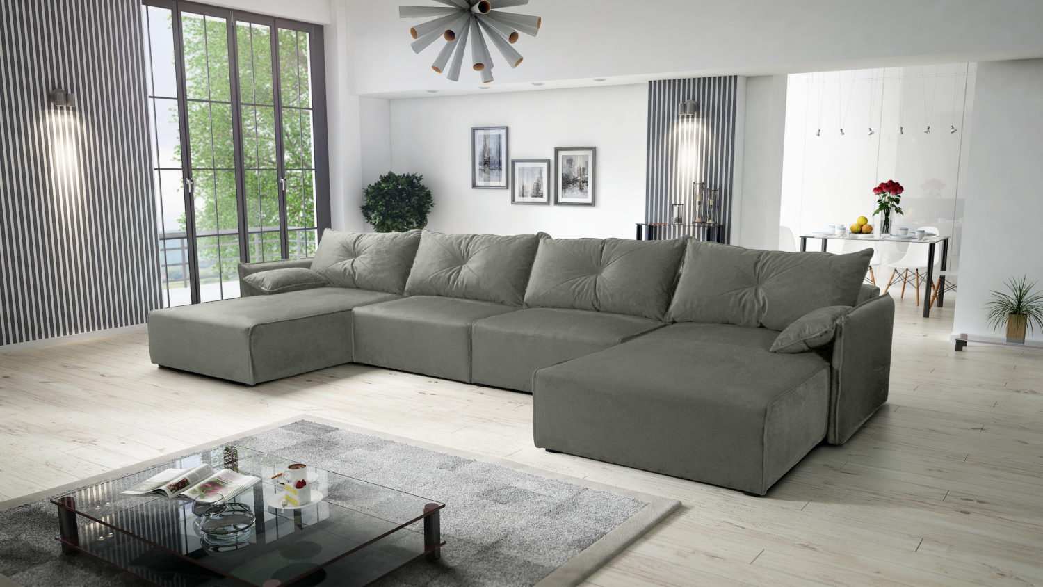 Nadýchaný a pohodlný design pro váš obývací pokoj - Rozkládací sedačka LEON U Představujeme vám sedací soupravu LEON, která do vašeho obývacího pokoje vnese nejen pohodlí, ale i moderní styl. Tento model do tvaru U nabízí dostatek prostoru pro relaxaci celé rodiny, a to díky velkoryse nadýchaným sedákům a opěrným polštářům. Celá konstrukce je navržena s důrazem na komfort, což z ní dělá ideální místo pro posezení s přáteli, rodinné filmové večery nebo jen klidné chvíle s knihou. Sedačka je čalouněna jemnou potahovou látkou, která je příjemná na dotek a dodává nábytku luxusní vzhled. Dostupných je 11 barevných variant, od klasických neutrálních tónů až po výraznější odstíny, takže si snadno vyberete tu pravou, která se bude hodit k vašemu interiéru. Praktické úložné prostory a variabilita Sedačka LEON není jen krásná, ale i vysoce funkční. Je vybavena dvěma praktickými úložnými prostory, do kterých snadno uschováte lůžkoviny, sezónní dekorace nebo dětské hračky a udržíte tak obývací pokoj v dokonalém pořádku. Kromě toho je sedačka také rozkládací, což vám umožní snadno vytvořit pohodlné lůžko pro hosty. Pokud potřebujete ještě více místa k sezení, je možné dokoupit přídavný taburet ve stejné barevné variantě, který skvěle doplní celou sestavu. Tento taburet může sloužit jako další místo k sezení, podnožka nebo jako provizorní odkládací plocha. LEON představuje kombinaci elegance, pohodlí a praktičnosti. UPOZORNĚNÍ: U tohoto produktu vyžadujeme platbu předem. NELZE objednat na dobírku. PROVEDENÍ Funkce spaní 110 x 400 cm 2 objemné úložné prostory na lůžkoviny Pohovka vyplněna vysokoelastickou čalounickou pěnou T2844 + čalounická výplň Owata 300g Vlnové pružiny v sedáku zvyšující pohodlí Potaženo jemnou sametovou látkou Royal Sedačka obsahuje 4 velké polštáře a 2 malé dekorační Možnost dokoupit taburet ve stejné barvě ROZMĚRY Šířka - 420 cm Hloubka - 179 cm Hloubka sedáku - 56 cm Výška sedu - 38 cm Výška - 85 cm Povrch spaní - 110 x 400 cm Rozměry taburetu - 100 x 98 x 38 cm Rozměrová tolerance +/- 3 cm.