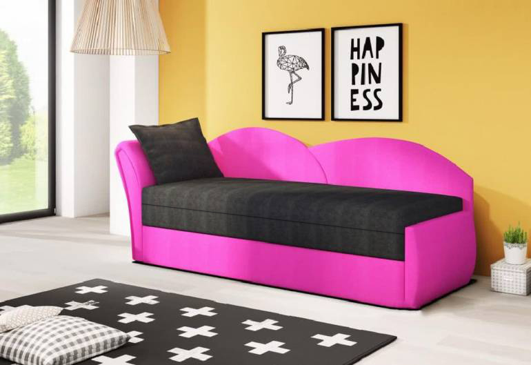 FRONTI Rozkládací válenda AGA - černo-růžová - Alova 04 + Alova 76