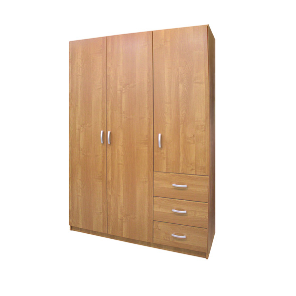 Šatní skříň se 3 dvířky a 3 šuplíky šířka 140 cm výška 200 cm hloubka 58 cm