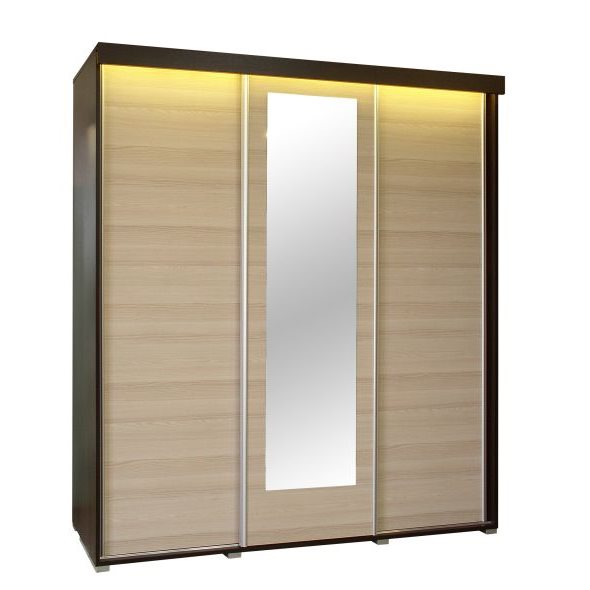 Šatni skříň ze systému Alaska rohová se 3 posuvnými dvířky, osvětlení led šířka 200 cm výška 210 cm hloubka 65 cm