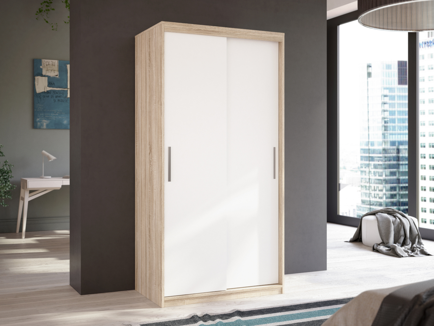Šatní skříň Ska A15 Barva korpusu: Dub - sonoma, Rozměry: 150 cm, Dveře: Bílé
