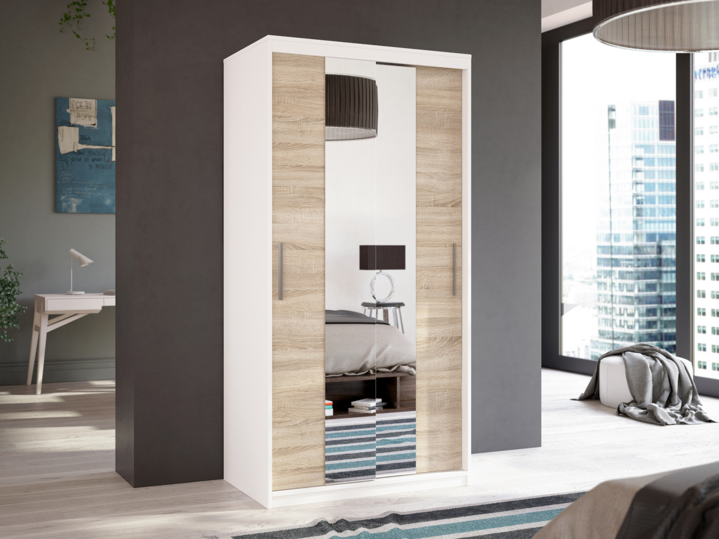 FRONTI Šatní skříň ANTIGO 100 Zrcadlo Bílá/Sonoma 2532