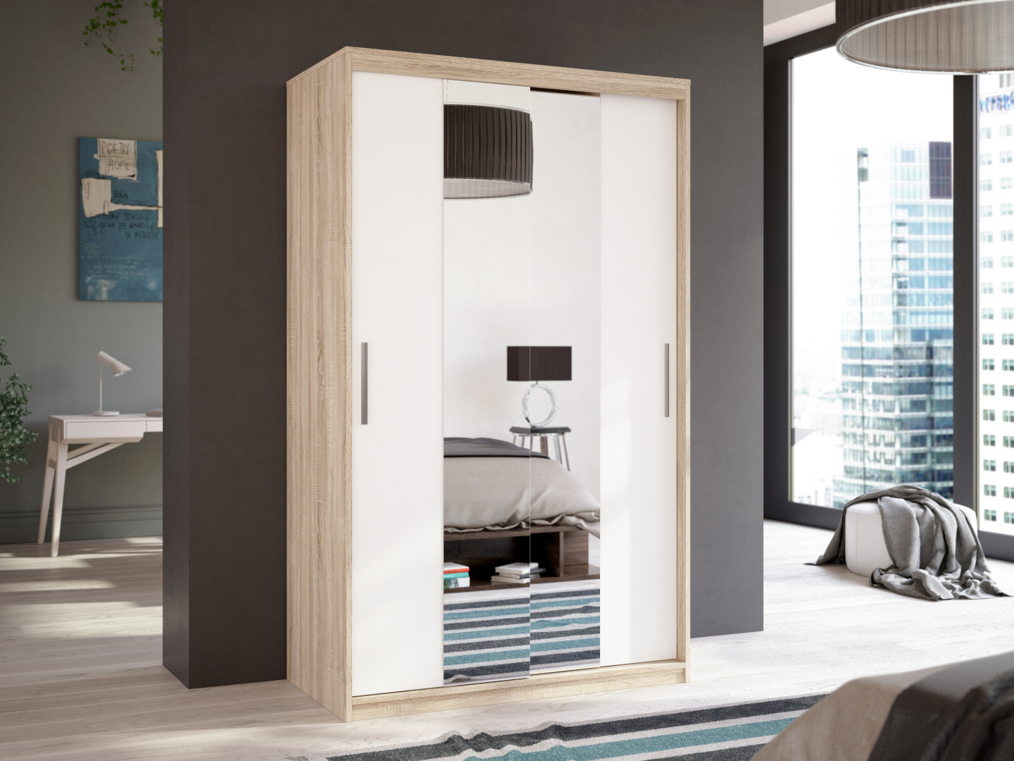 FRONTI Šatní skříň ANTIGO 120 Zrcadlo Sonoma/Bílá 2534