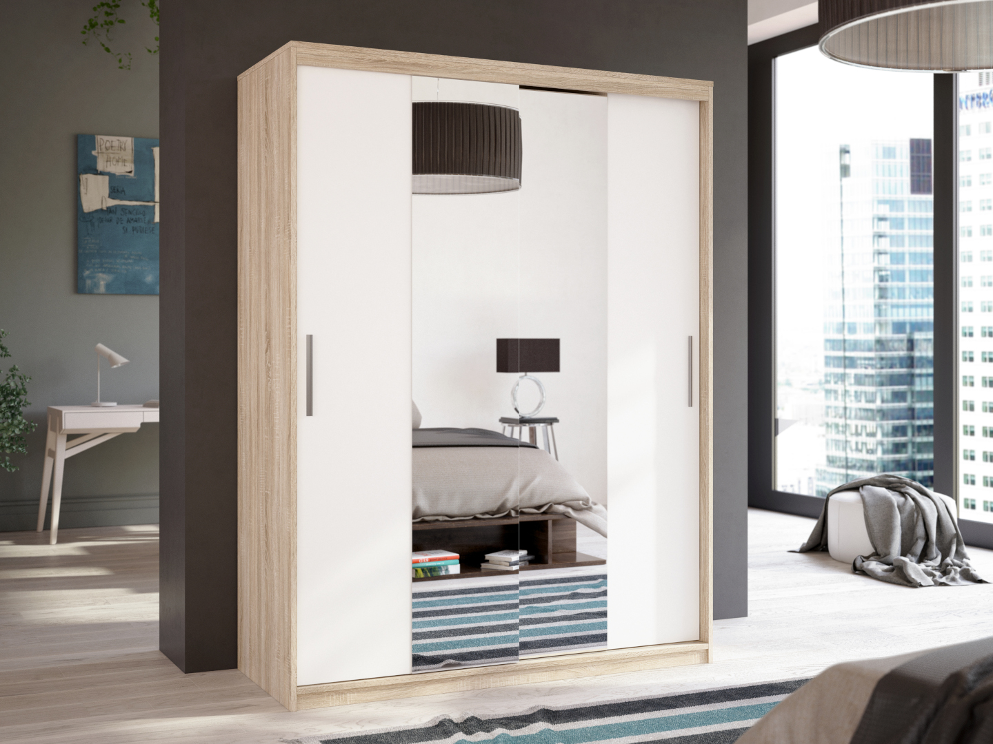 FRONTI Šatní skříň ANTIGO 150 Zrcadlo Sonoma/Bílá 2542