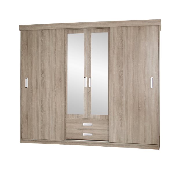 Šatní skříň ze systému California se 2 posuvnými dveřmi , 2 dvířky se zrcadlem 2 šuplíky šířka 250 cm výška 210 cm hloubka 62 cm