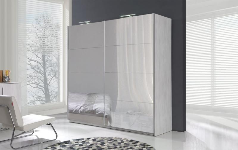 Rozměry: výška 211 cm šířka 225 cm hloubka 63 cm Barva: norská borovice + zrcadlo Ložnice "Dione" je nejnovější nabídkou z továrny na nábytek Maridex. Zahrnuje řadu praktických prvků, včetně prostorná skříň s posuvnými dveřmi, LED osvětlením a hliníkovými bočními profily, stejně jako pohodlná postel se zvýšeným rámem a nádobou na ložní prádlo, komoda a noční stolky. Systém je vyroben z vysoce kvalitní laminované desky borovice norská. ABS hrana chrání hrany před mechanickým poškozením. Prvky systému jsou ideální pro vybavení moderní ložnice. Osvětlení použité ve skříni a výběr vhodných doplňků vytvoří jedinečný a útulný interiér.