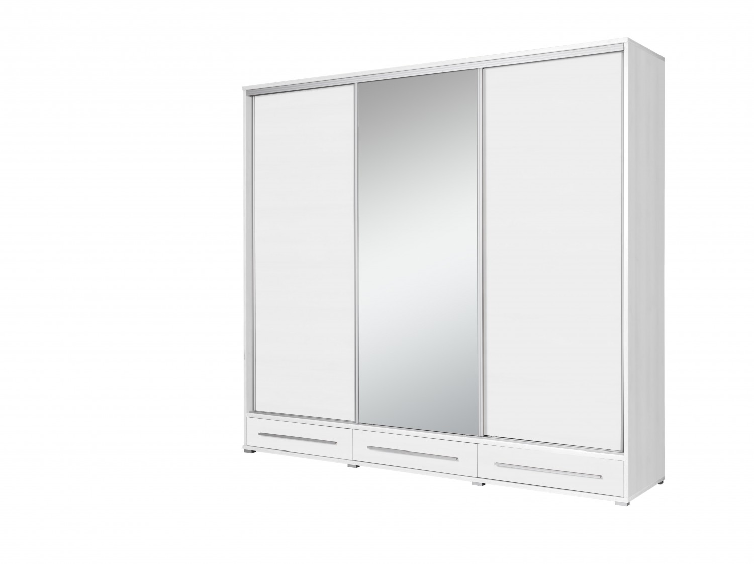BARVA: bílá Rozměry: výška 236 cm šířka 255 cm hloubka 61 cm Tloušťka korpusu: 22 mmTloušťka přední strany: 16 mm Systém posuvných dveří BIMAK - horní a spodní hliníkové vedení s ložiskovými válečky, hliníkové kliky (SEVROLL).Kuličkové ložisko H35 se zasouvá do zásuvek.Zajištěno okrajem 0,8 mm a 0,5 mm