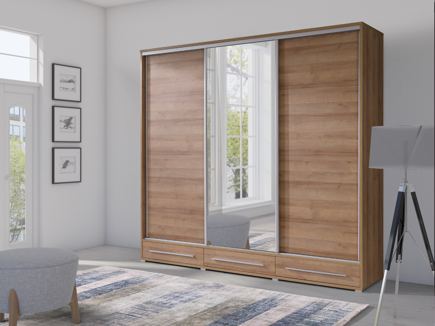 BARVA: dub burgunský Rozměry: výška 236 cm šířka 255 cm hloubka 61 cm Tloušťka korpusu: 22 mmTloušťka přední strany: 16 mm Systém posuvných dveří BIMAK - horní a spodní hliníkové vedení s ložiskovými válečky, hliníkové kliky (SEVROLL).Kuličkové ložisko H35 se zasouvá do zásuvek.Zajištěno okrajem 0,8 mm a 0,5 mm U vybraného produktu je hlavní foto pouze ilustrační. Ve skutečnosti vám bude doručena barevná varianta viz. 3. obrázek.