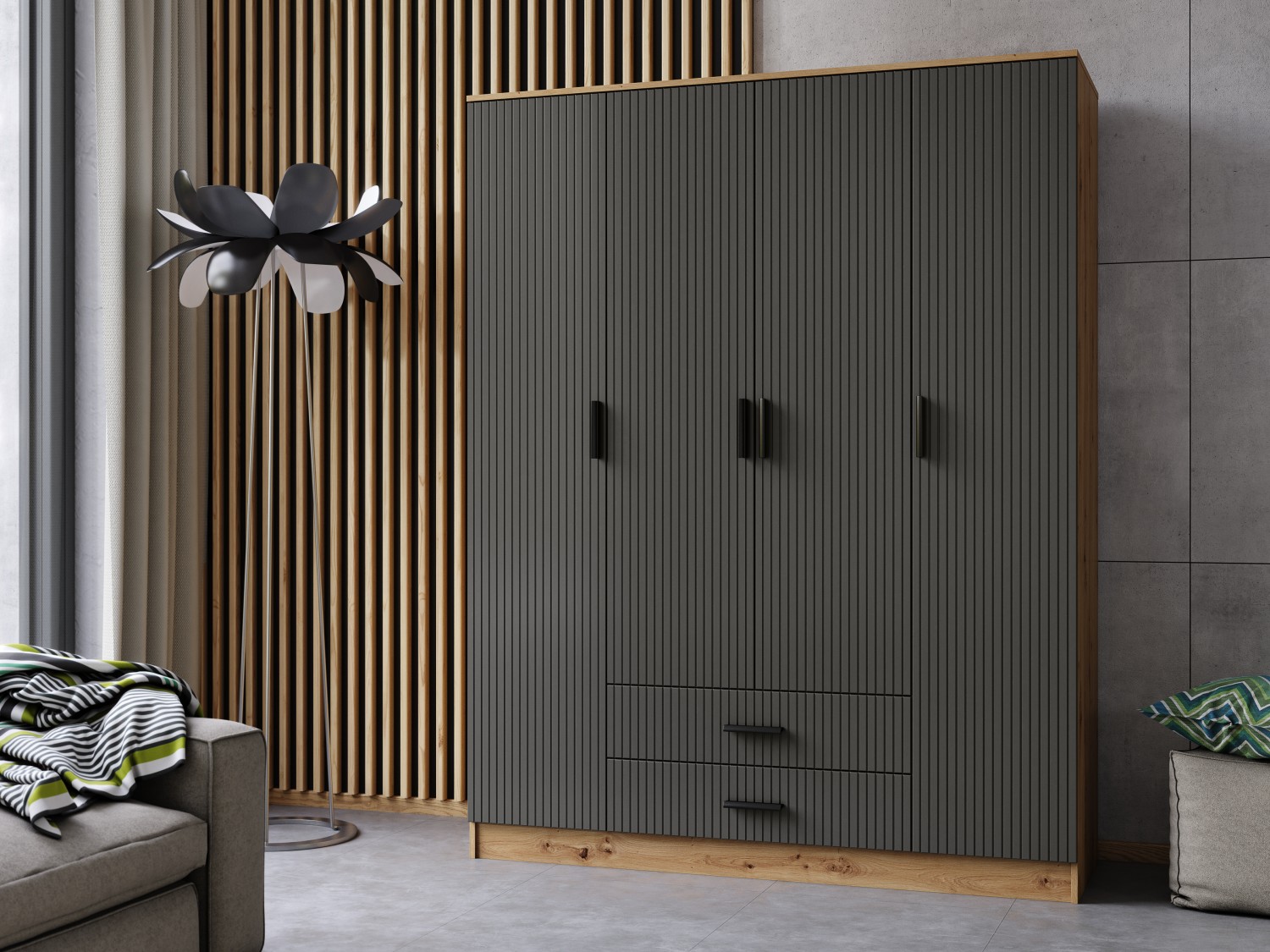 FRONTI Šatní skříň KASTELLO 160 Dub artisan + Grafit 18421