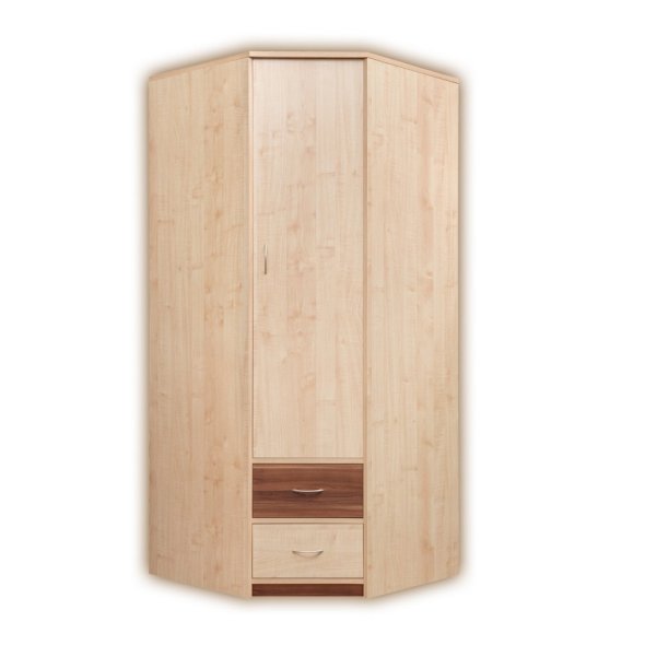 Šatní skříň rohová ze systému Koala s 1 dvířky a 2 šuplíky šířka 85 cm výška 195 cm hloubka 85 cm