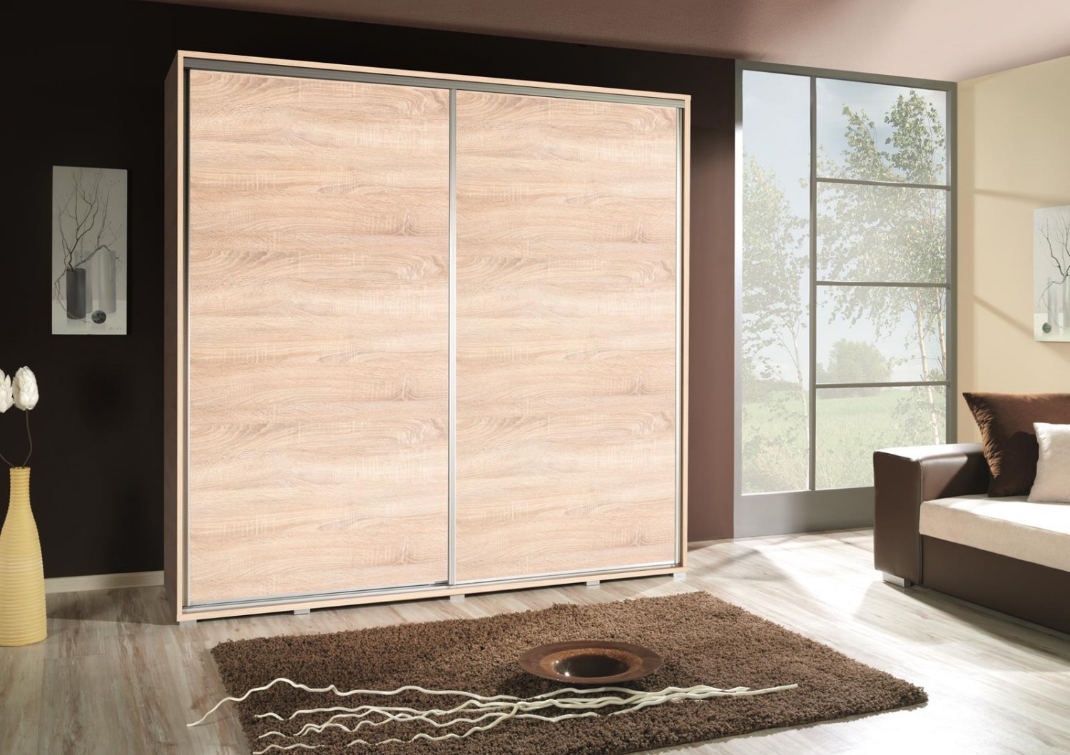 Rozměry: výška 215 cm šířka 205 cm hloubka 66 cm Barva: dub sonoma Skříně Penelopa jsou ideální pro téměř každou místnost. Vyznačují se vysokou kvalitou a funkčností. Vzhledem k různým rozměrům, různým způsobům uspořádání interiéru nebo bohatým barvám určitě najdete šatní skříň, která splní vaše očekávání.Nábytek je vyroben z laminované desky, hrany jsou zajištěny ABS hranou. Ve skříních se používají hliníková vodítka SEVROLL. Tloušťka korpusu je 22 mm, čela - 16 mm. Hliníkové boční profily. Plastové nohy.