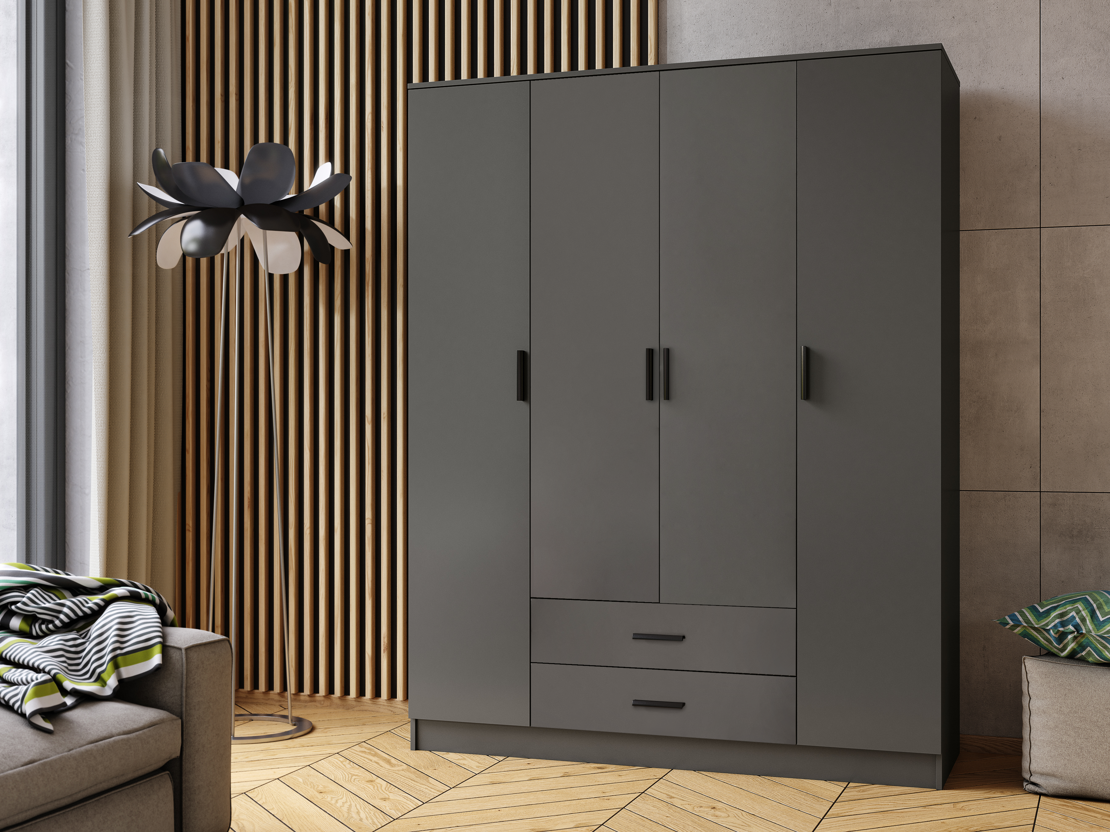 FRONTI Šatní skříň ROMANA 160 bez zrcadla grafit 18417