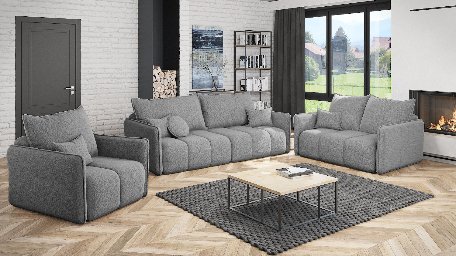 Sedací souprava CARMEN 3+2+1 - pohodlí a design na jednom místě Tato sedací souprava je ztělesněním luxusního pohodlí a elegantního designu. Její moderní a čisté linie dokonale doplní každý interiér, ať už preferujete minimalistický styl nebo útulnou atmosféru. Sedací souprava CARMEN je potažena látkou s texturou, která je příjemná na dotek a zároveň vysoce odolná vůči každodennímu opotřebení. Její robustní konstrukce a kvalitní materiály zajišťují dlouhou životnost a maximální komfort pro vás i vaši rodinu. Sedací soupravu CARMEN si můžete pořídit jako kompletní sestavu 3+2+1, nebo si jednotlivé prvky (třímístnou pohovku, dvoumístnou pohovku a křeslo) zakoupit zvlášť. Každý prvek je navržen tak, aby poskytoval dostatek prostoru a pohodlí, a větší z pohovek navíc nabízí praktickou funkci rozkladu pro příležitostné přespání. Sedací souprava CARMEN je dostupná v 7 stylových barevných variantách, což vám umožňuje vybrat si tu, která se nejlépe hodí do vašeho domova. S touto sedací soupravou získáte nejen krásný kus nábytku, ale i místo pro relaxaci a odpočinek. UPOZORNĚNÍ: U tohoto produktu vyžadujeme platbu předem. NELZE objednat na dobírku. PROVEDENÍ Sedáky vybaven vlnovými pružinami Dva objemné úložné prostory v 3-místnné pohovce Výplň: čalounická pěna T30 Látka Abriamo Polštáře na opěradlo a dekorační polštáře součástí Funkce spaní v 3-místné pohovce 2 Automaty usnadňující rozklad Sedák 3- místné pohovky je rozdělen na dva samostatné prvky umožňující přeměnu na rohovou pohovku 2-místná pohovka a křeslo bez možnosti rozkladu ROZMĚRY 3-místné pohovky Funkce spaní - 190x140 cm Hloubka - 102 cm Šířka - 216 cm Výška - 86 cm ROZMĚRY 2-MÍSTNÉ POHOVKY Hloubka - 102 cm Šířka - 150 cm Výška - 86 cm ROZMĚRY KŘESLA Hloubka - 102 cm Šířka - 85 cm Výška - 86 cm Rozměrová tolerance +/- 3 cm.