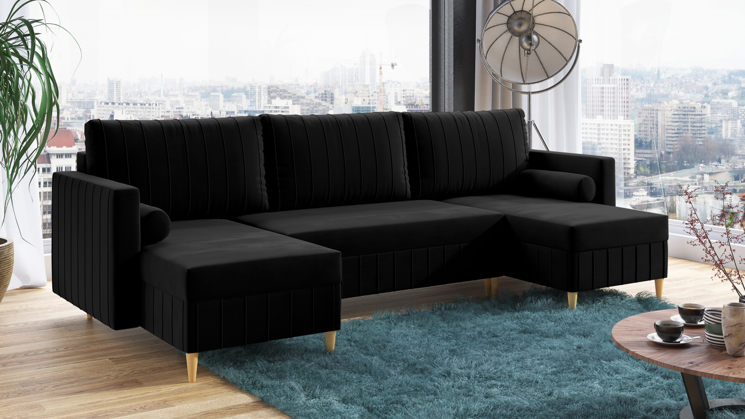 ROZMĚRY: Šířka: 290 cm Hloubka: 145 cm Hloubka sedu: 80 cm Výška sedu: 46 cm Výška: 95 cm Plocha na spaní: 150x270 cm