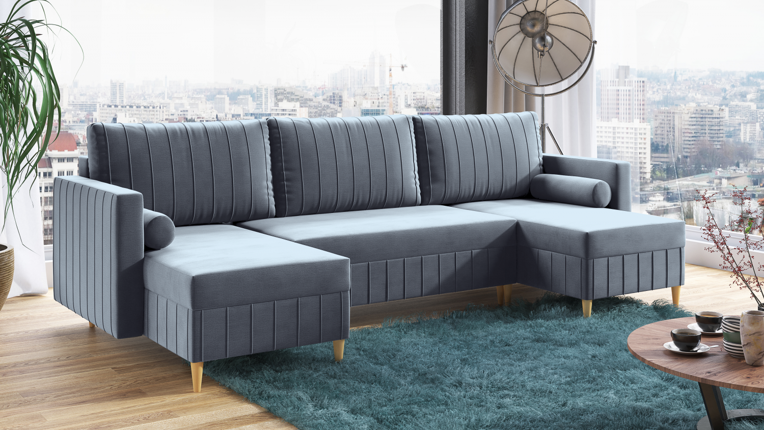 ROZMĚRY: Šířka: 290 cm Hloubka: 145 cm Hloubka sedu: 80 cm Výška sedu: 46 cm Výška: 95 cm Plocha na spaní: 150x270 cm
