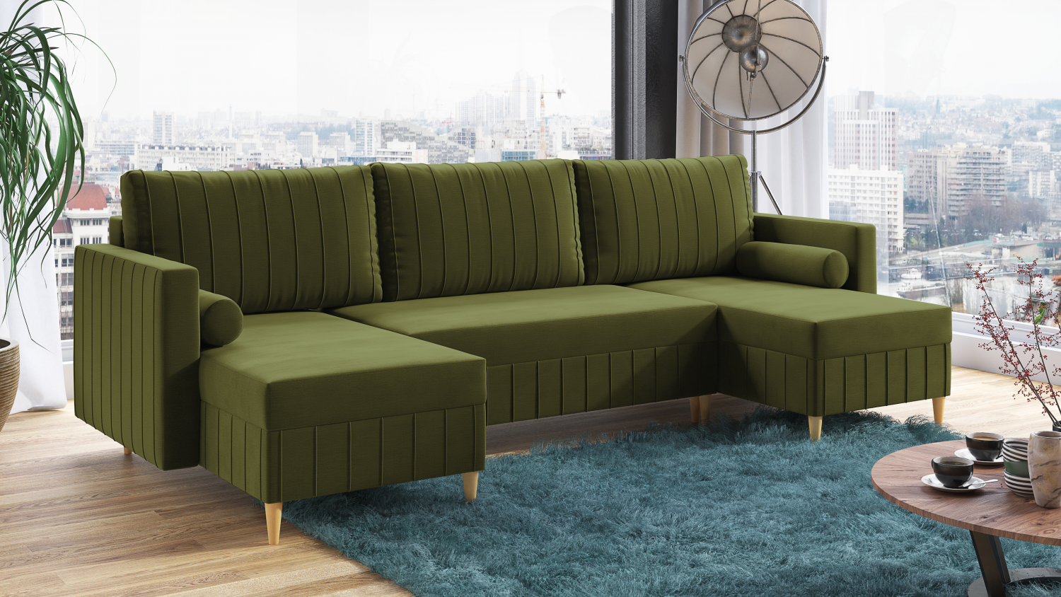 ROZMĚRY: Šířka: 290 cm Hloubka: 145 cm Hloubka sedu: 80 cm Výška sedu: 46 cm Výška: 95 cm Plocha na spaní: 150x270 cm