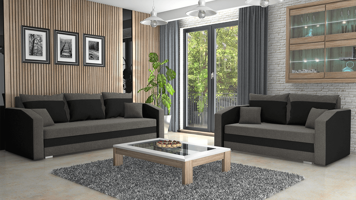 Domů Nábytek Obývací pokoj Sedací soupravy FRONTI Sedací souprava FABIO 3+2 tmavěšedá-černá