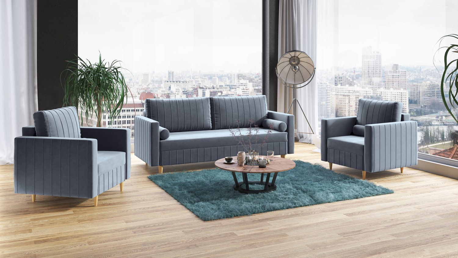 FRONTI Sedací souprava FIORELLO 3+1+1 světlemodrá - MONOLITH 70