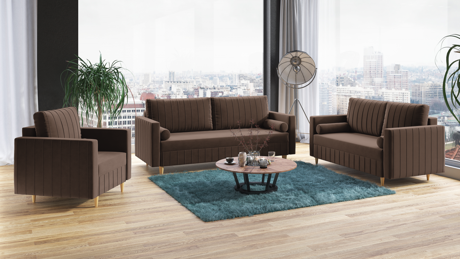 FRONTI Sedací souprava FIORELLO 3+2+1 hnědá - DREAM VELVET 202.37