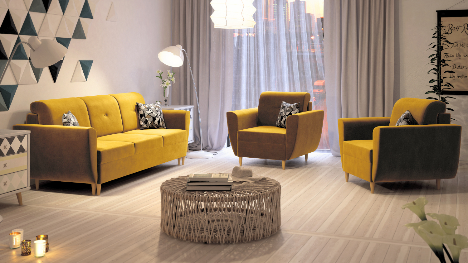 FRONTI Sedací souprava HALDEN 3+1+1 hořčicová - MONOLITH 48