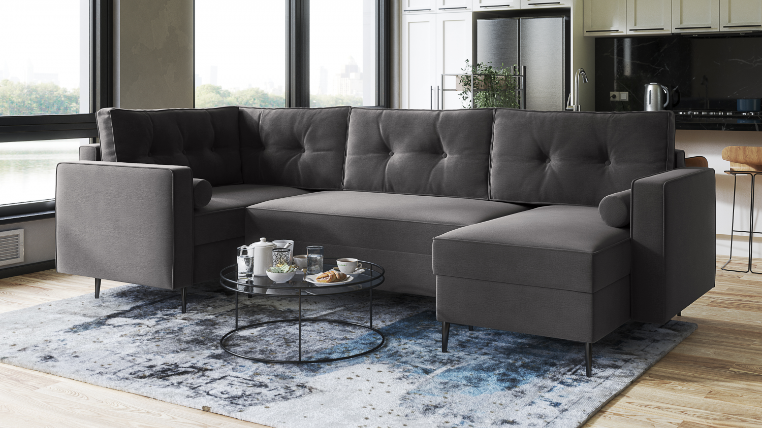 FRONTI Rohová sedací souprava EDISON černo-tmavěšedá - Levý roh + Bonell
