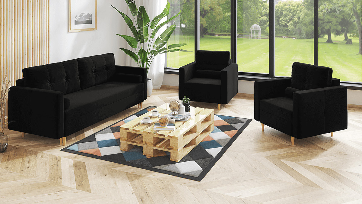 FRONTI Sedací souprava MARTEN 3+1+1 černá - DREAM VELVET 202.12