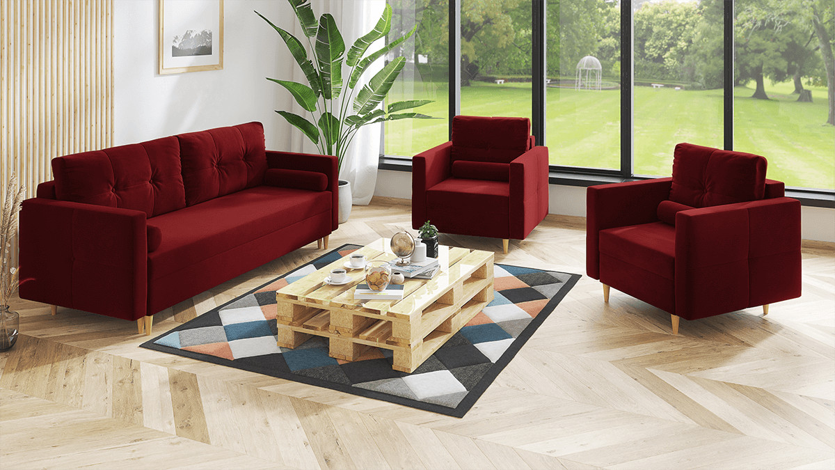 FRONTI Sedací souprava MARTEN 3+1+1 červená - DREAM VELVET 202.10