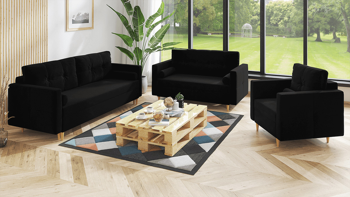 Domů Nábytek Obývací pokoj Sedací soupravy FRONTI Sedací souprava MARTEN 3+2+1 černá - DREAM VELVET 202.12